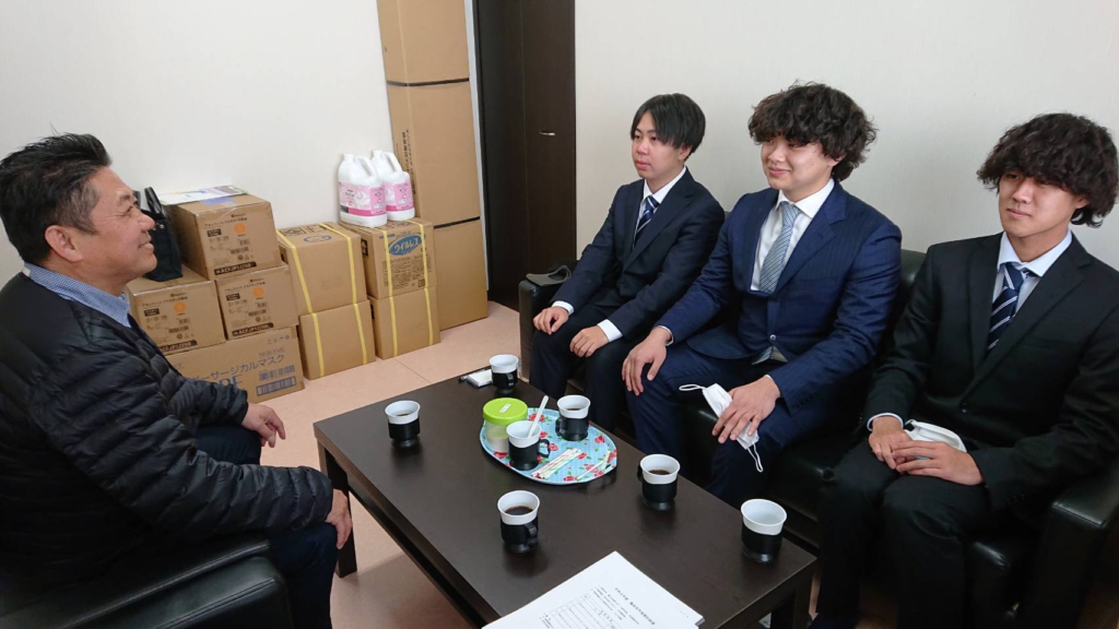 左から、1年林、2年西田、西山、3名の実習生で、