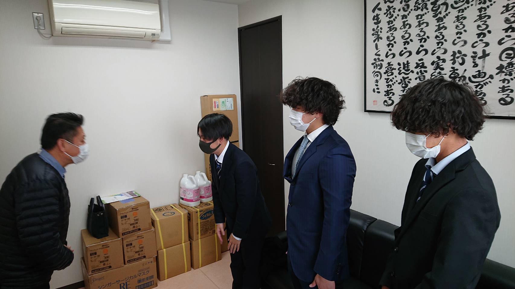 左から、1年林、2年西田、西山、3名の実習生で、