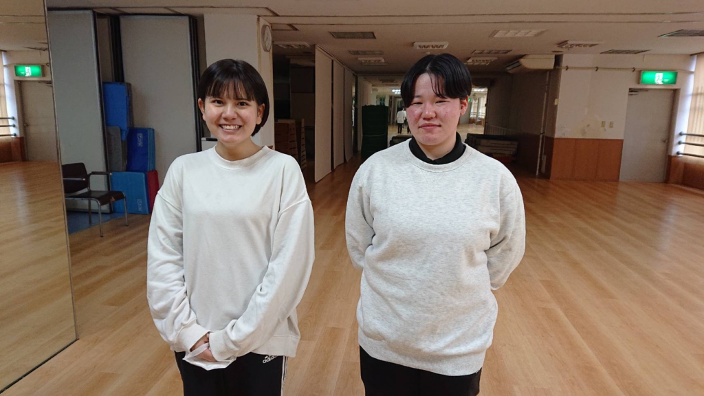 向かって左はソフトテニス経験の重友さん、右はソフトボール経験の垣花さん、