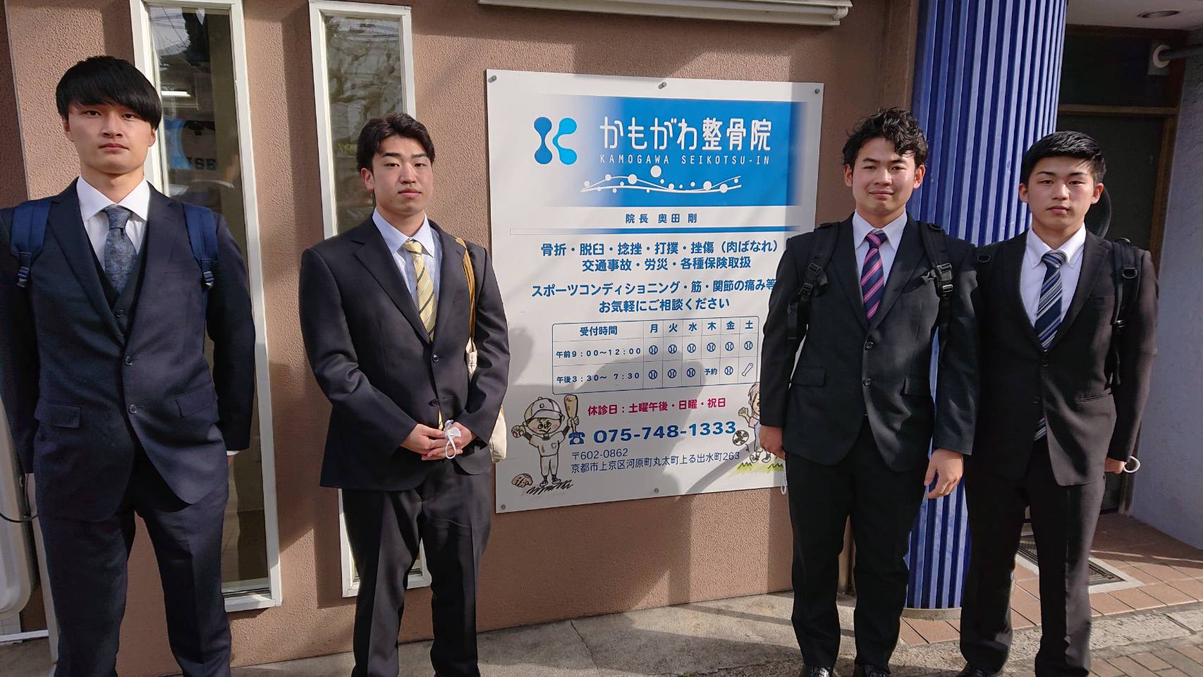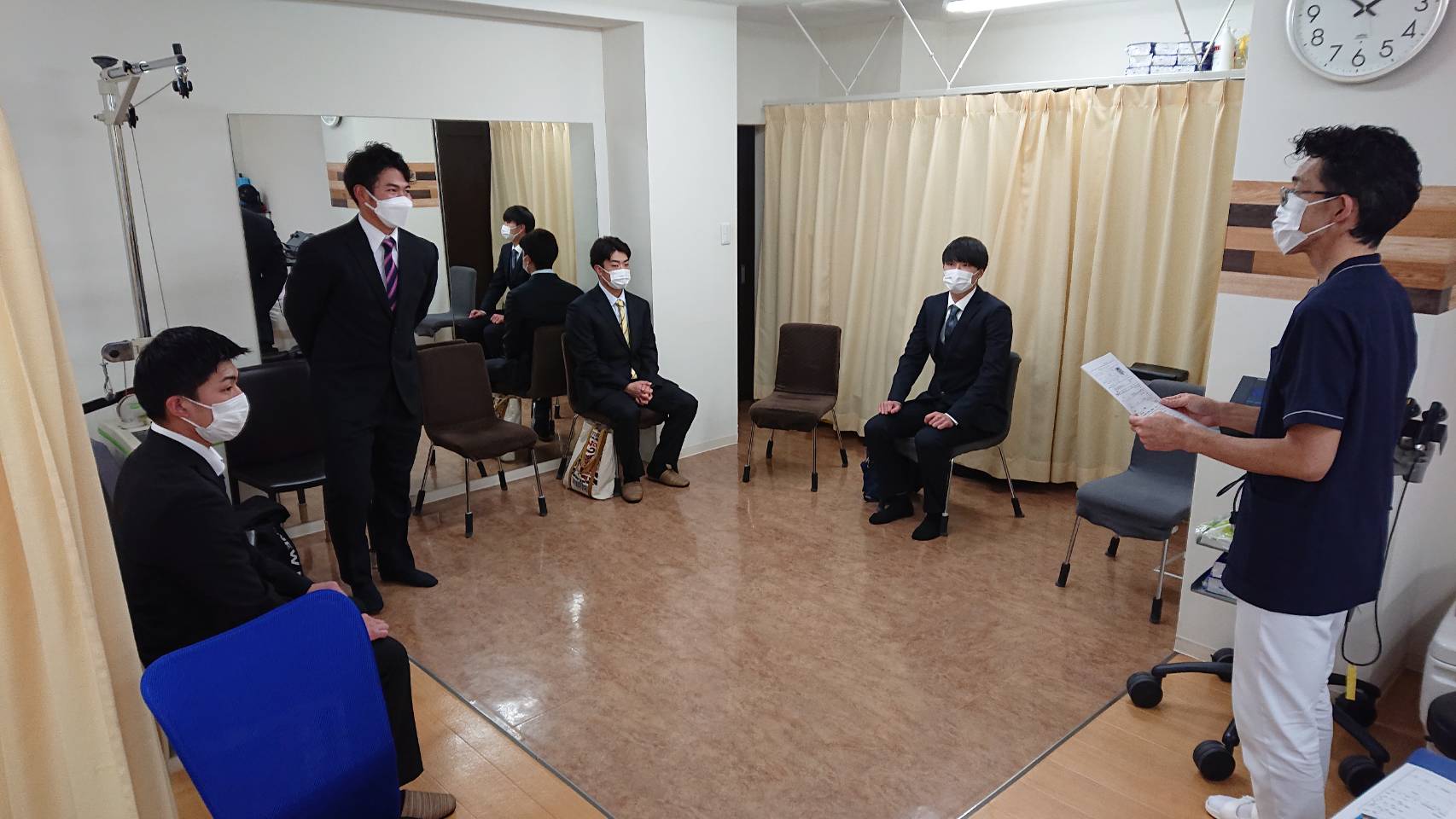 写真にあるのは、京都かもがわ整骨院での実習前現地指導会の様子。