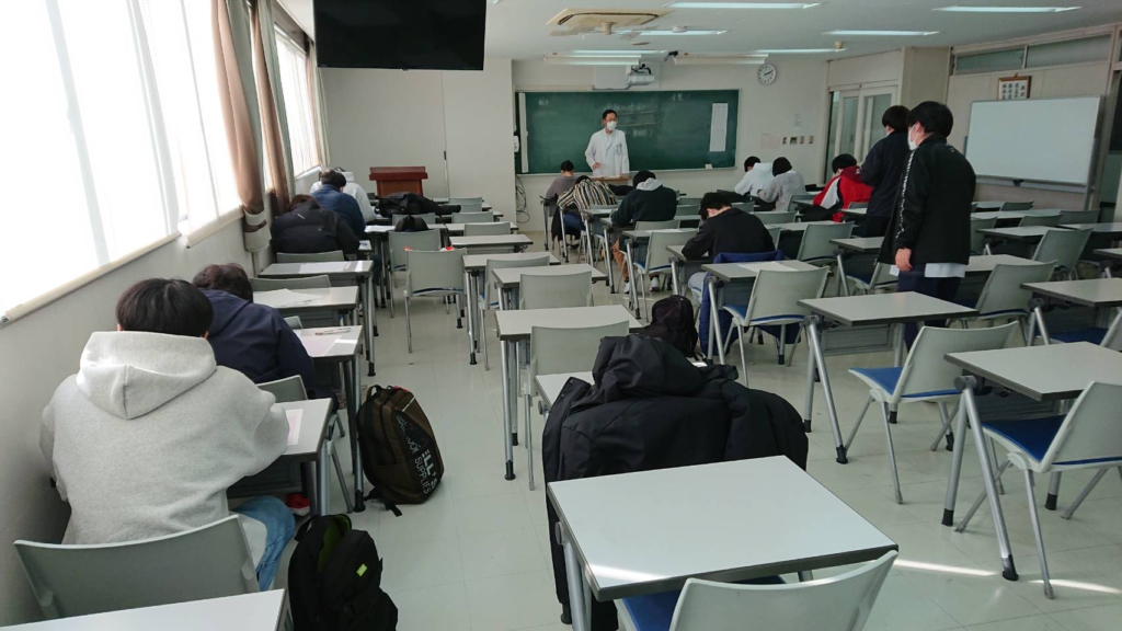 まず、講義形式です。当然、筆記試験が主となります。この日は2年生が受験しており、