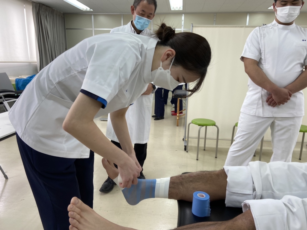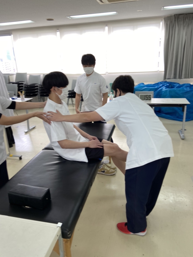 2.4名で、受験者、患者役、整復助手の役割を決める。