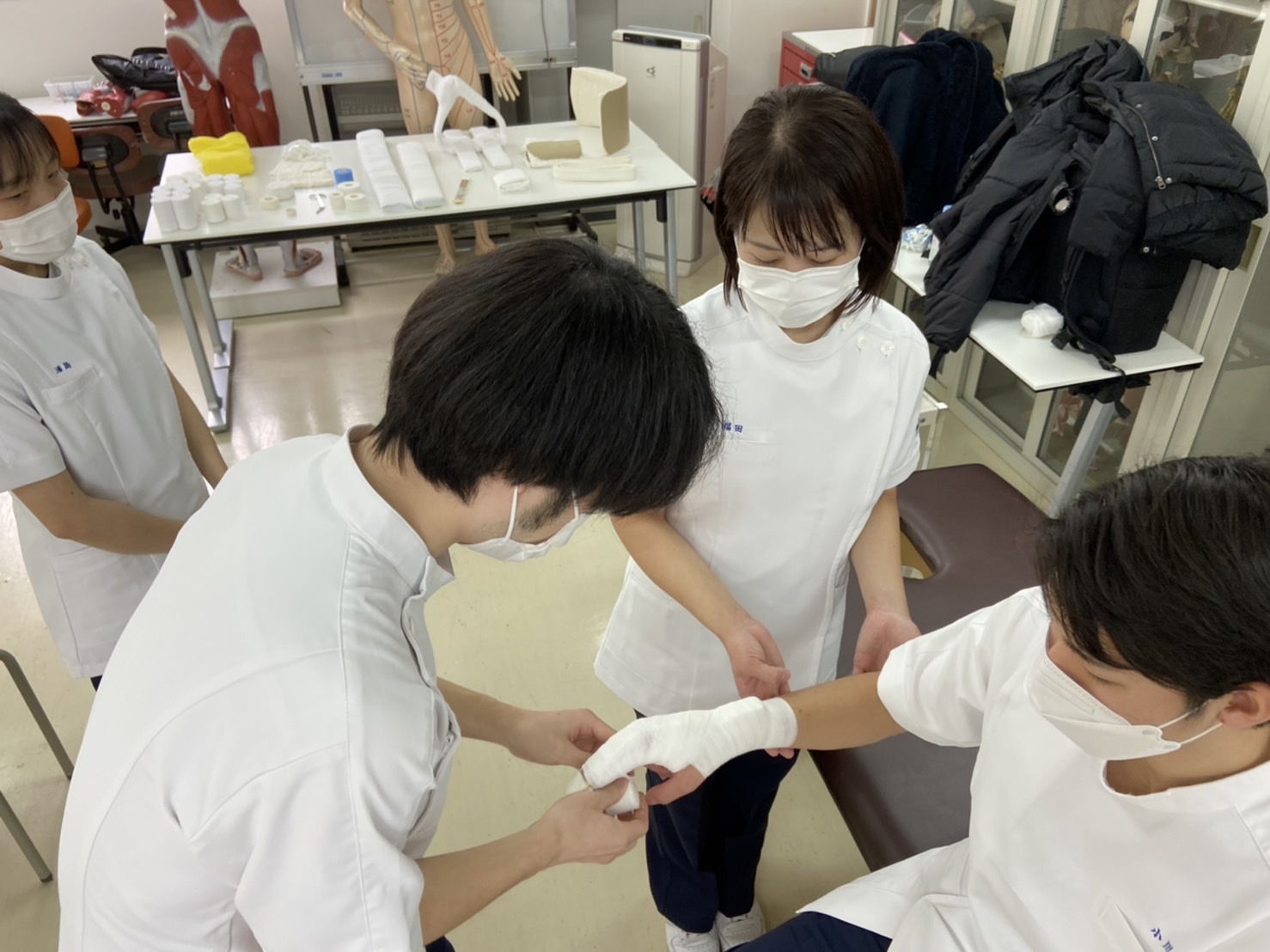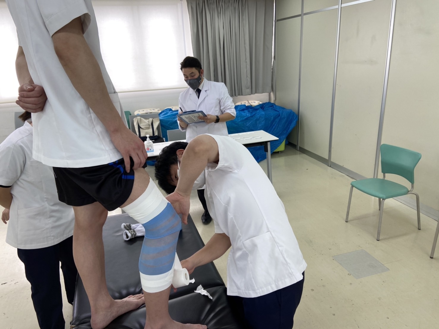 2.4名で、受験者、患者役、整復助手の役割を決める。