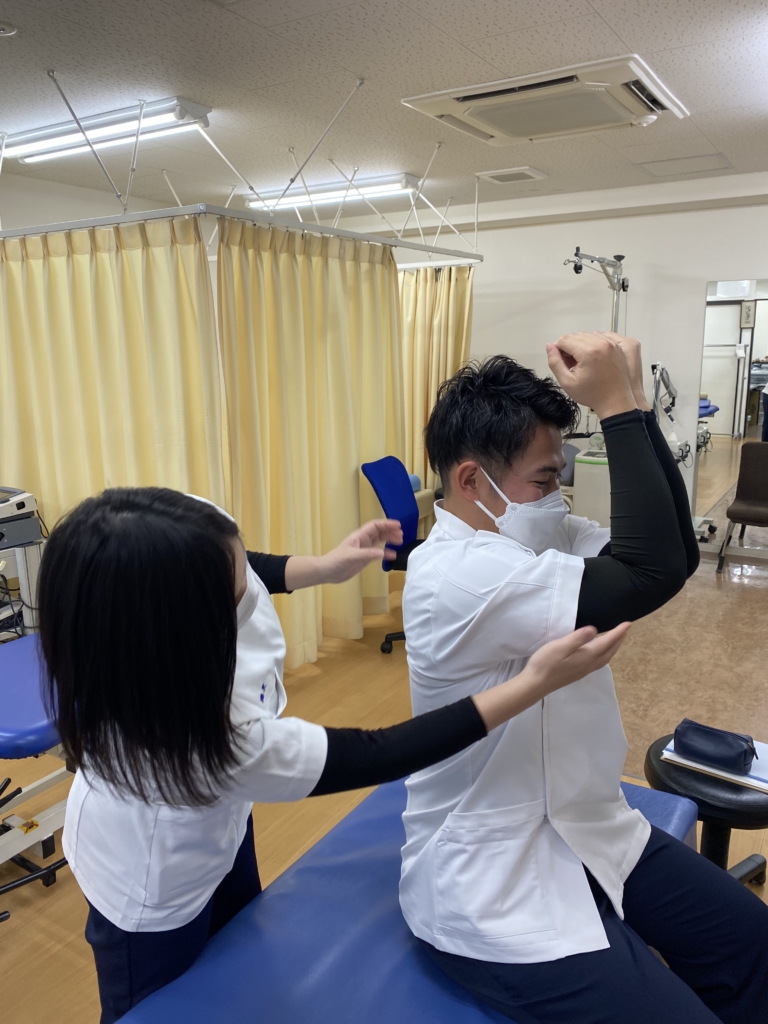 (ちなみにこの写真は、原テストをやているところ。投球障害に興味がある人は、是非、原テストを調べてみて!)