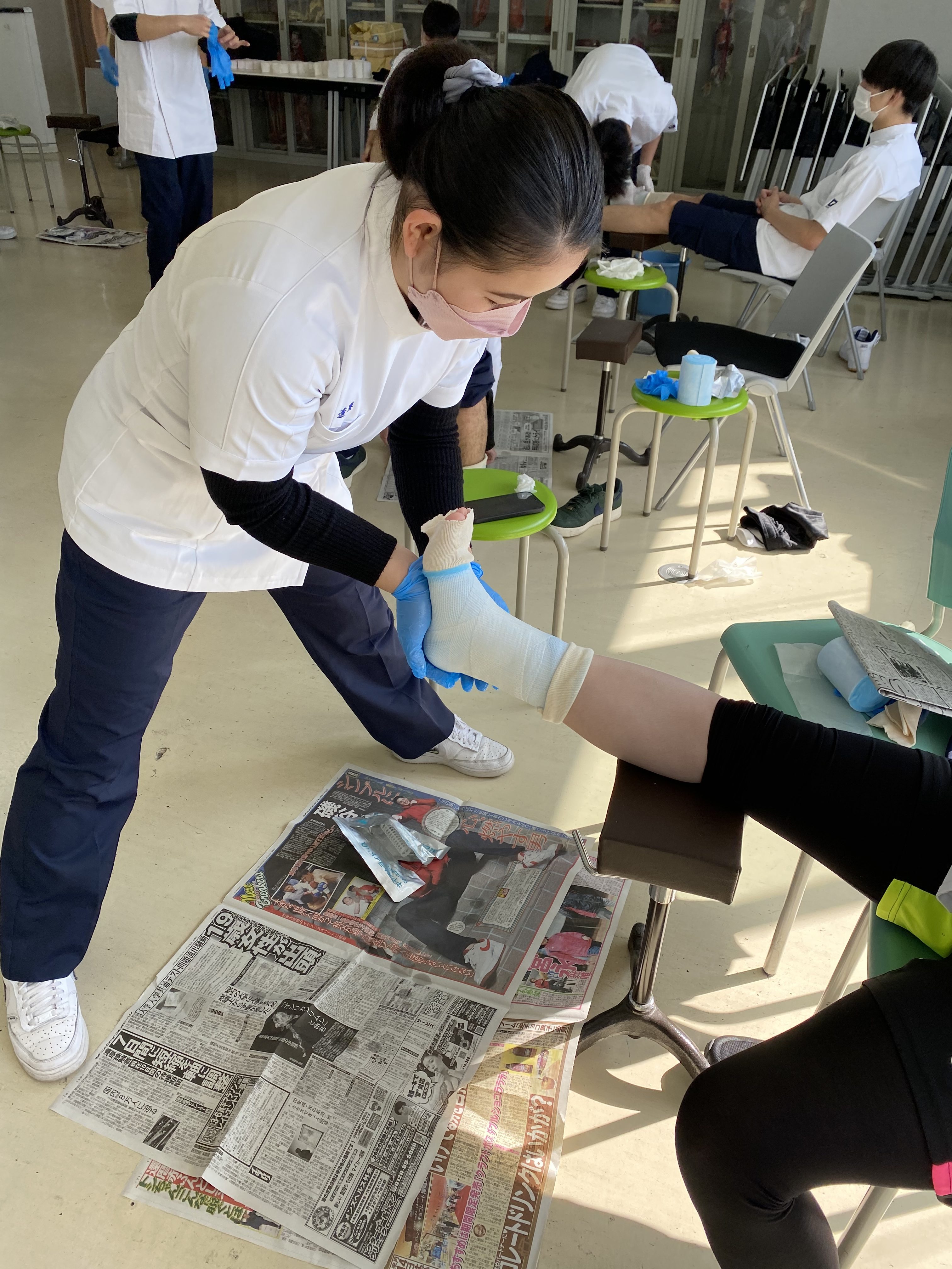 1年生のギプス実習風景(その1)です。#キャストライト #柔道整復師 #柔道整復師の卵 pic.twitter.com/yJM0i8pzej