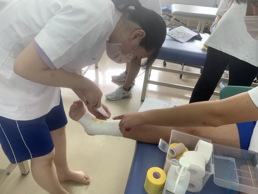 2022.07.10 巻かれる側から巻く側へ。 こんにちは。山根です。 1年生ではテーピングの授業があります。 慣れない手つきで巻いたり、切ったり、、、悪戦苦闘しながらもなんとか完成!! 今までは巻かれてばかりで巻く側の思考になるには少し時間がかかるかもしれませんね( ;∀;) プロとして綺麗に巻けるのは当たり前!! 解剖学、運動学などの知識を応用しながら巻けるよう頑張りましょう(*^^*) 前の記事 記事一覧 次の記事