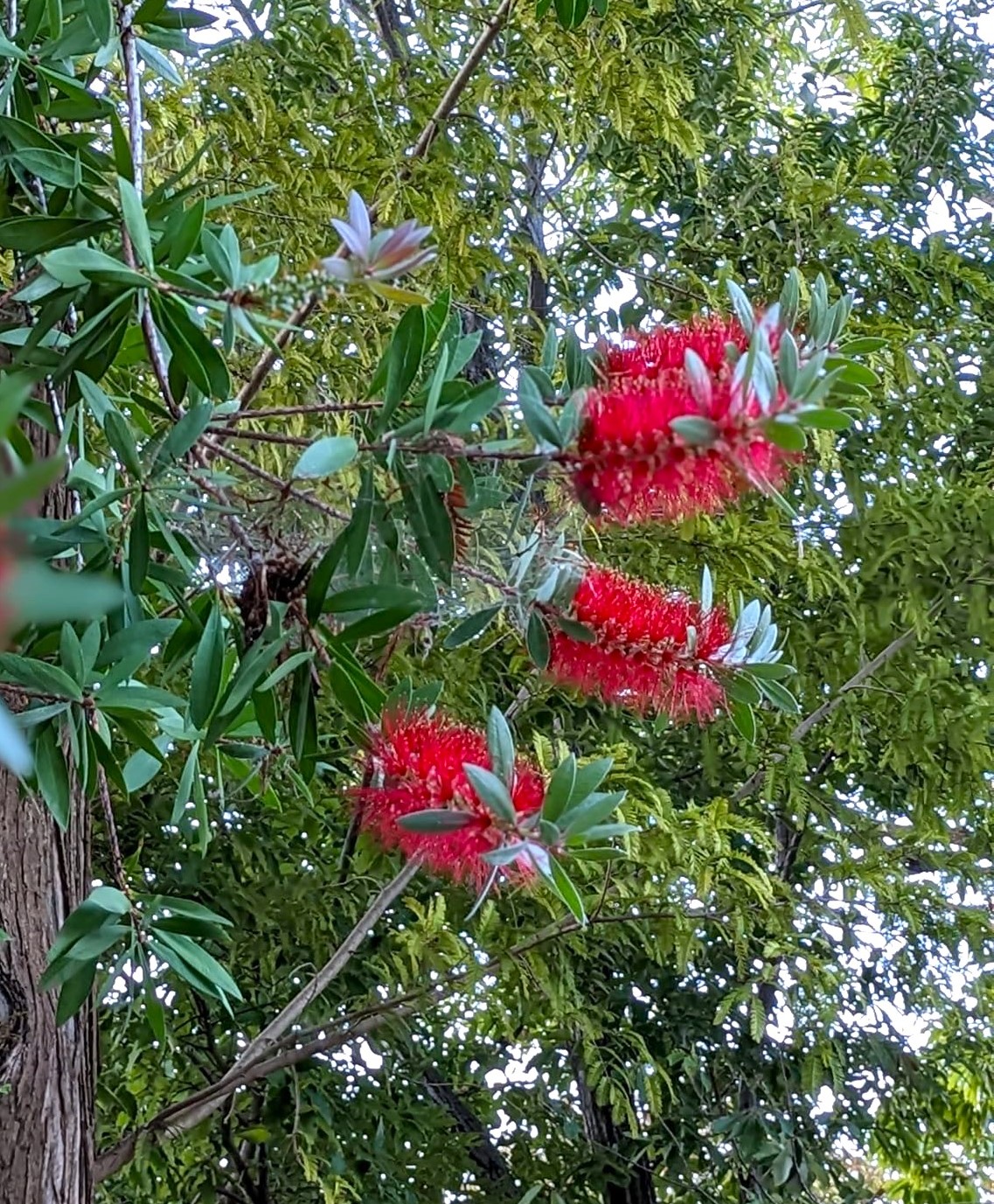 この植物は「ブラシノキ」(フトモモ科)という、見たまんまの名前でした(笑)