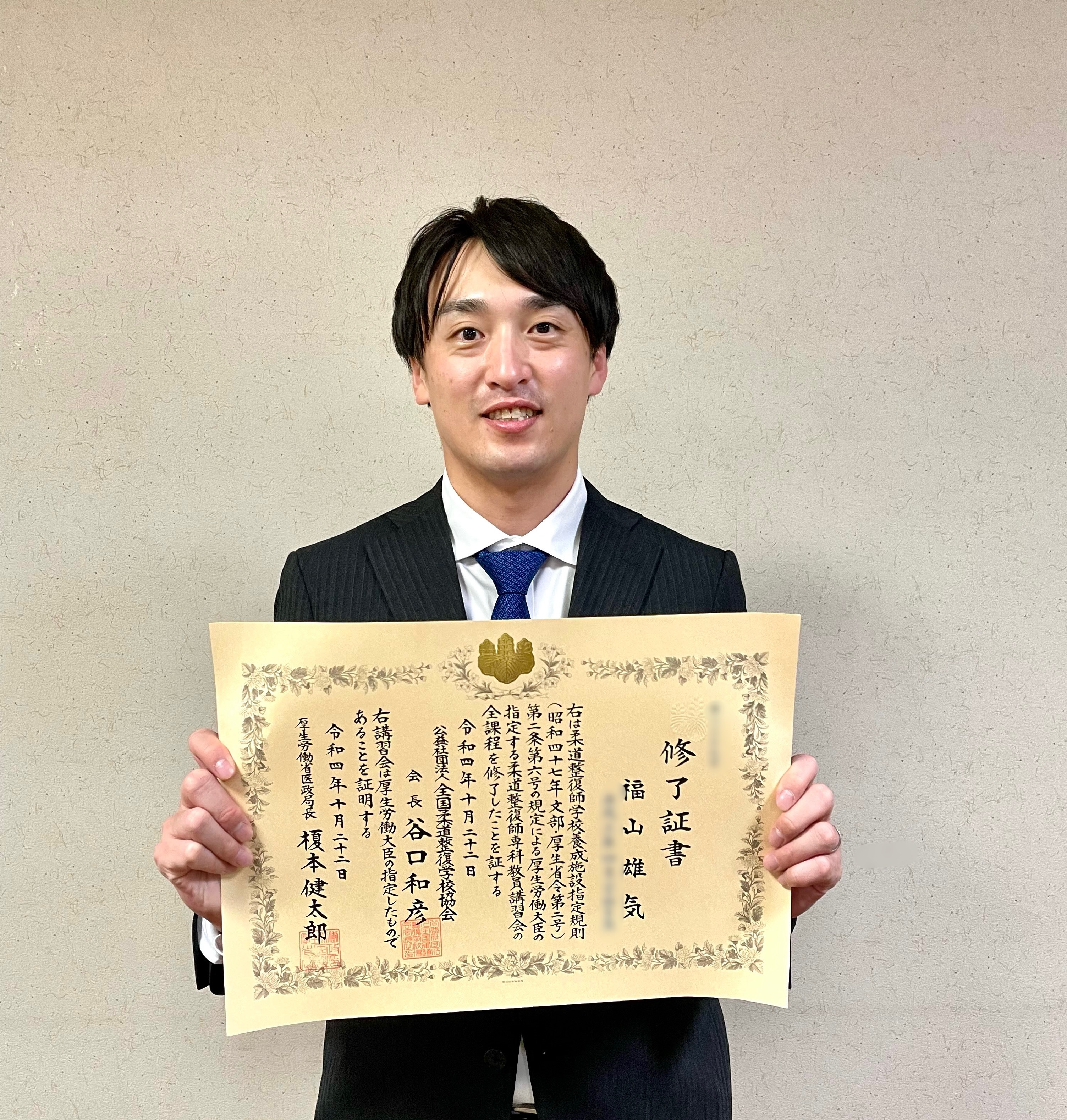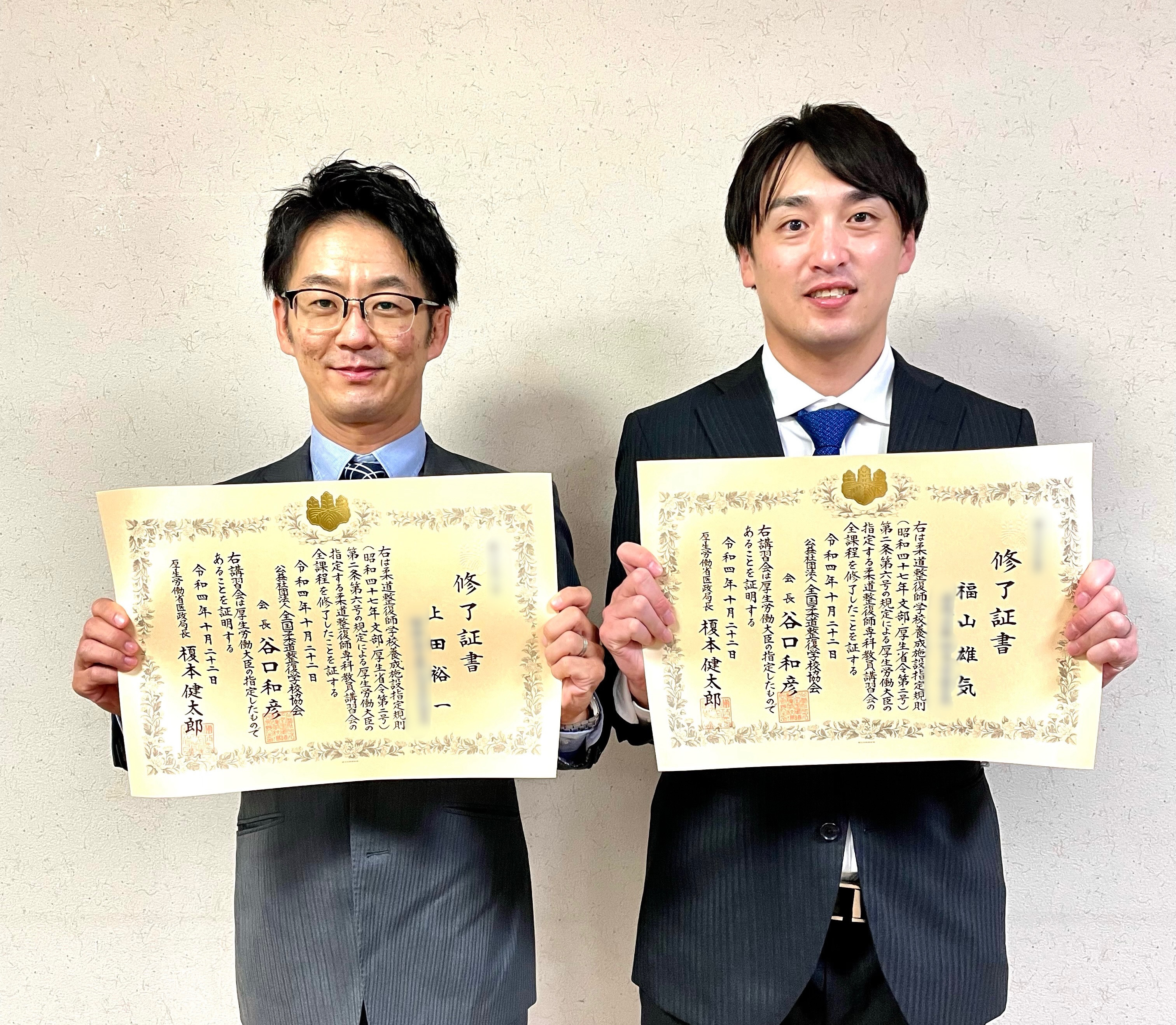 この度、見事に‟専科教員免許(修了証書)”を取得されました。おめでとうございます。