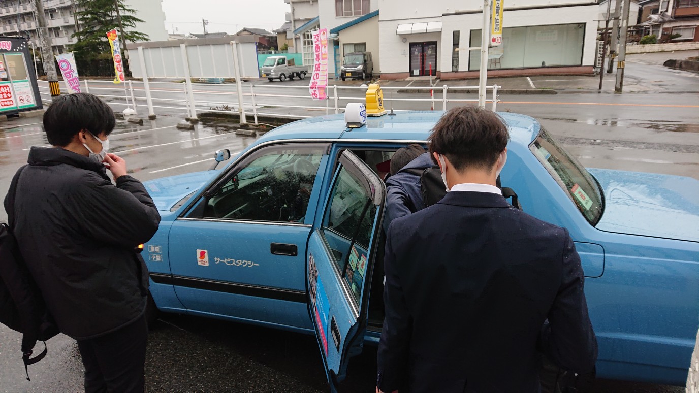 ただ防風雨の悪天候で、タクシー乗り合いでの移動となりました。(普段は徒歩か、路線バスです)
