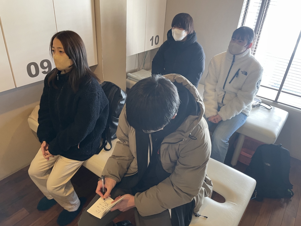 今日はとても寒く、早めに白衣から私服に着替えてからのフィードバックをしました。たくさん質問もできていました。マスクを外すと笑顔がより輝いていますね。早くマスクをしないで「お大事に!」といえる環境になれたらいいですね。