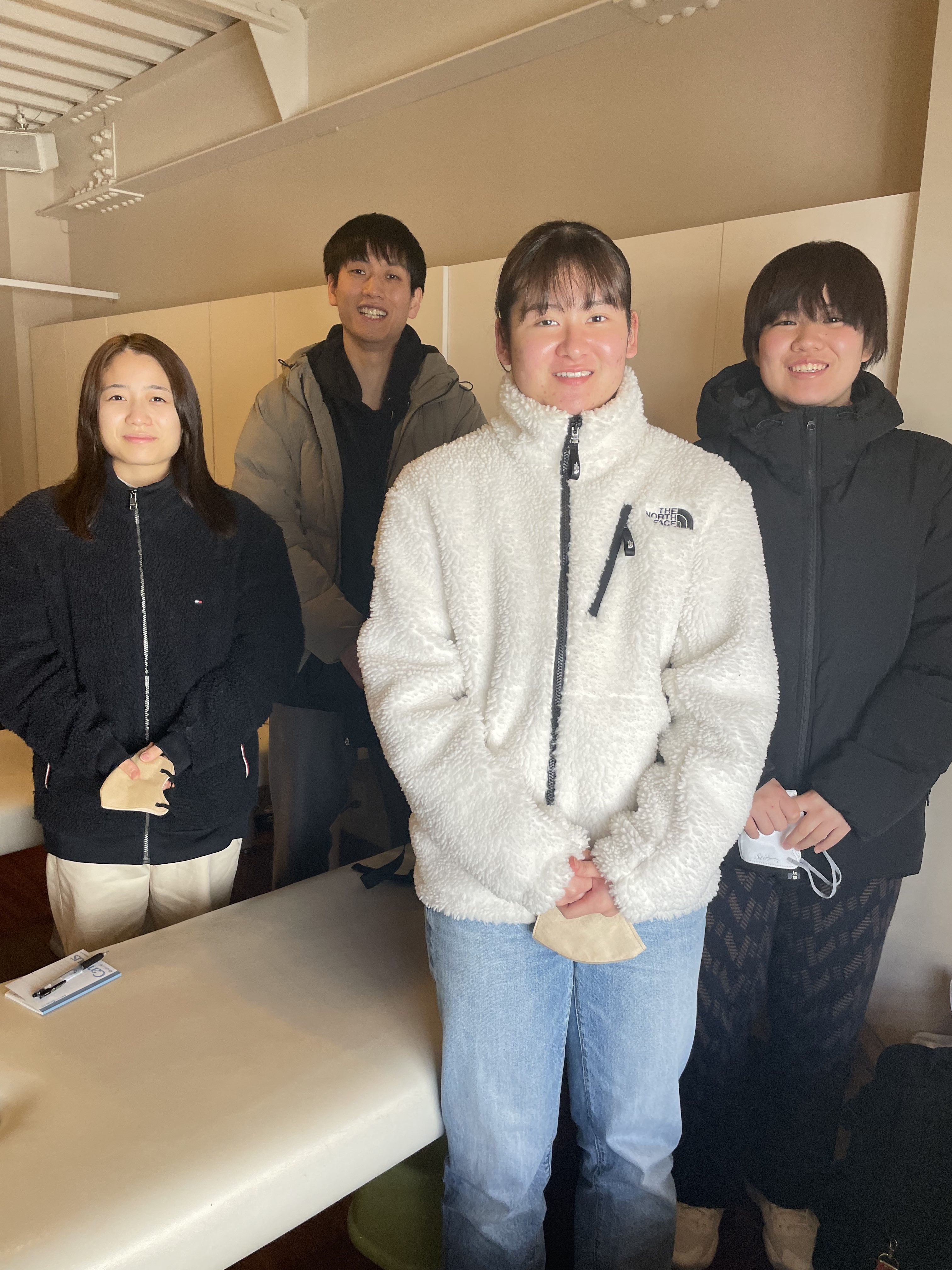 今週の学生は、榎 章吾(芦間高等学校卒)、加藤 凜姫(安城学園高等学校卒)、田村 朱唯奈(粉河高等学校卒)、中野 凜(門真西高等学校卒)の4人の学生です。