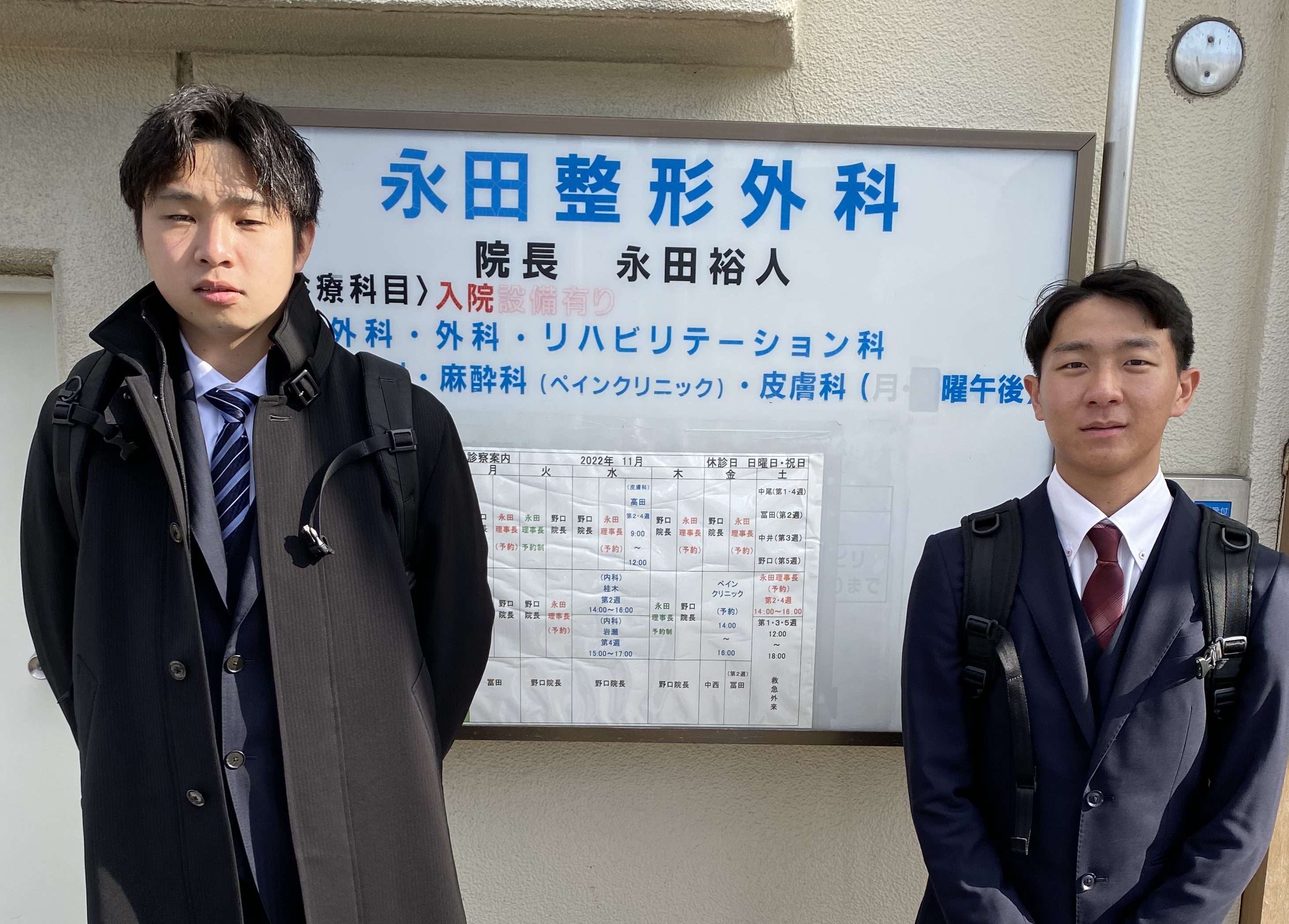 2023.02.10 臨床実習事前訪問 いよいよ来週から1・2年生は臨床実習期間に入っていきます。 その前に実習施設までの交通方法の確認や実習施設への挨拶などを目的にお世話になる施設に訪問をしてきました。 今回は西宮市の甲子園近くにある永田整形外科に訪問させて頂きました。 永田整形外科は卒業生が多く勤務していて、医療現場を色々と勉強できる貴重な施設です。 しっかり準備をして実習に臨んで、少しでも成長できるように頑張ってほしいと思います。 前の記事 記事一覧 次の記事