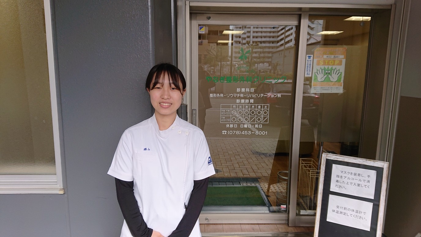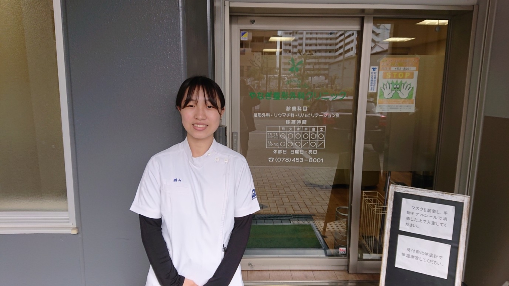 今回は、実習施設では常連の、兵庫県淡路島こぐり整骨院での2年北村君と、こちらも常連の神戸市にあるやなぎ整形外科での、2年勝山さんです。