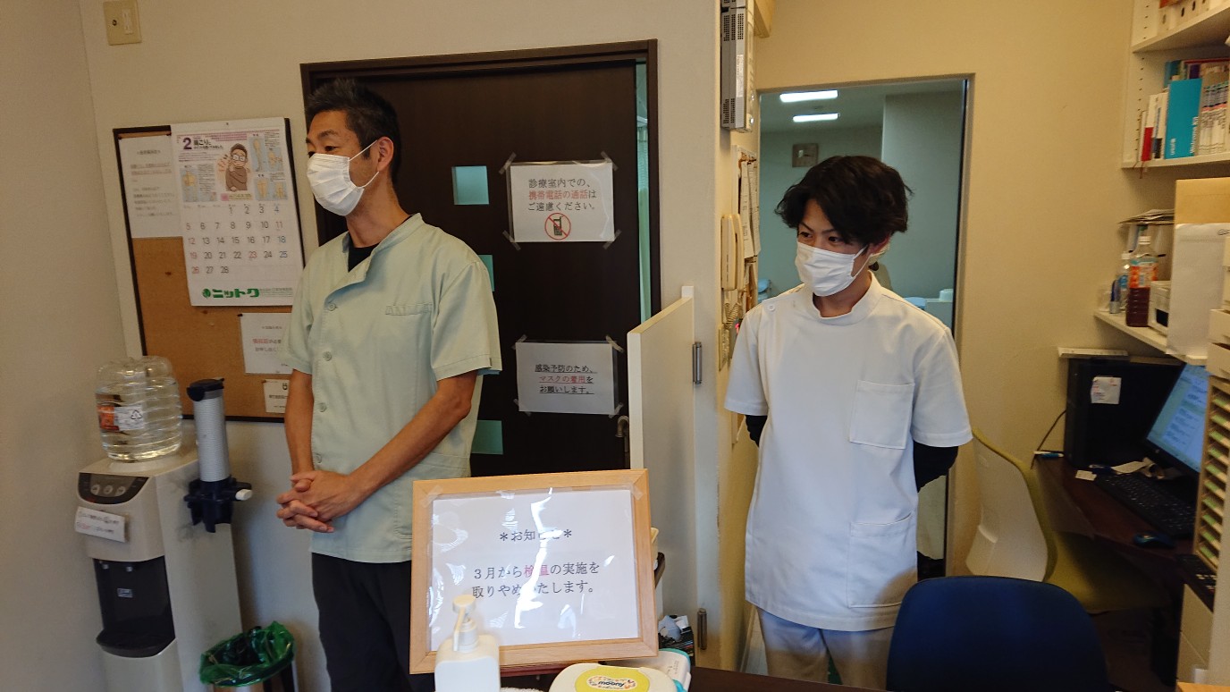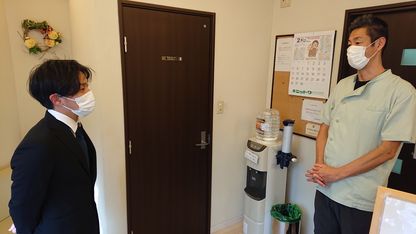 岩川君は筆者の30年ほど前の教え子で、白衣を着ているもう一人の先生は、履正社の卒業生、堀君。卒後研修先として紹介したのも筆者で、もう7年になる。