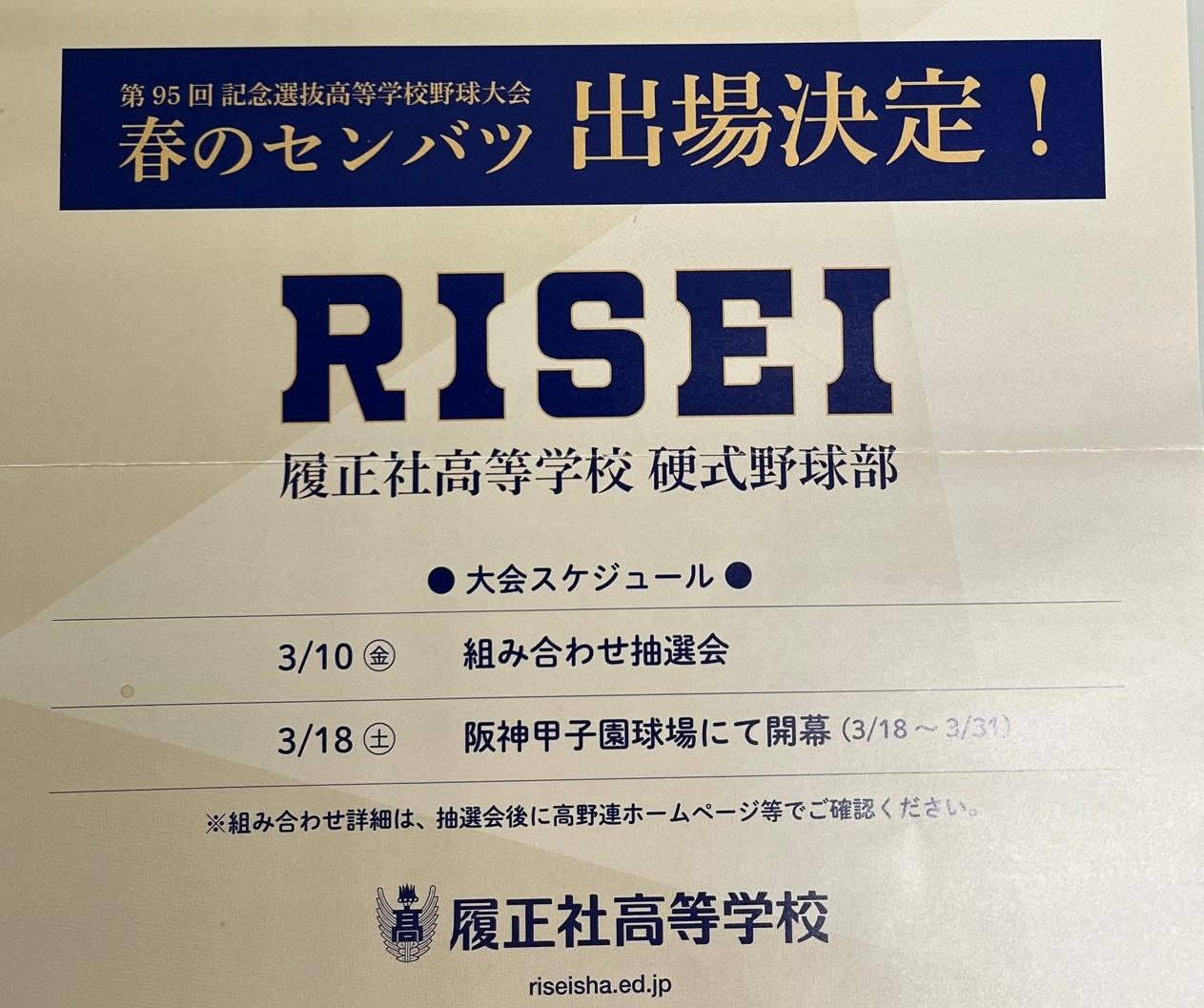 2023.03.13 春はセンバツから!! WBC(ワールドベースボールクラシック)での日本代表の戦いは圧巻です。このまま優勝まで突っ走しり、東京オリンピック金メダルとの2冠を願います。 今週土曜日からは高校野球選抜大会も開幕し、野球ファンにはたまらない期間ですね。 履正社高校野球部の対戦日程(3/23木・第3試合/予定)も決まり、応援の準備もぼちぼち始めているところです。 現在、柔道整復学科の学生は実習期間中ですが、試合当日は甲子園球場に集合だぁ~!! (柔の道 T・T) 前の記事 記事一覧 次の記事