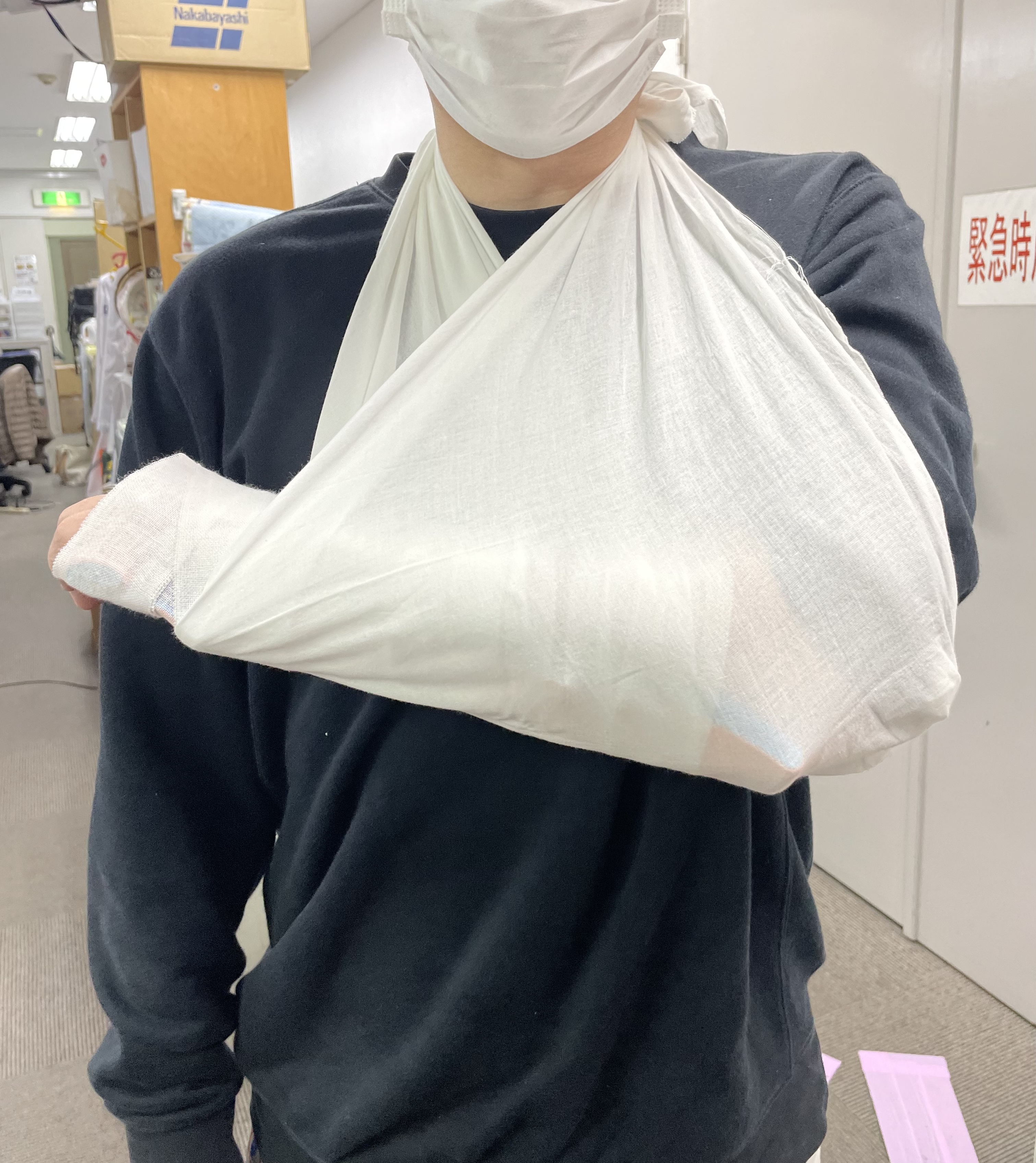 2023.04.13 ロングギブス固定 こんにちは、柔道整復学科のFです。 本学科の学生がオートバイで転倒し手首(手関節)を負傷して登校してきました。応急処置として固定を行い整形外科に骨折の確認をお願いしました。 レントゲン検査の結果、骨には損傷がありませんでした。TFCC損傷(軟骨損傷)と診断されました。安静にするためロングギブス固定中です。 前の記事 記事一覧 次の記事