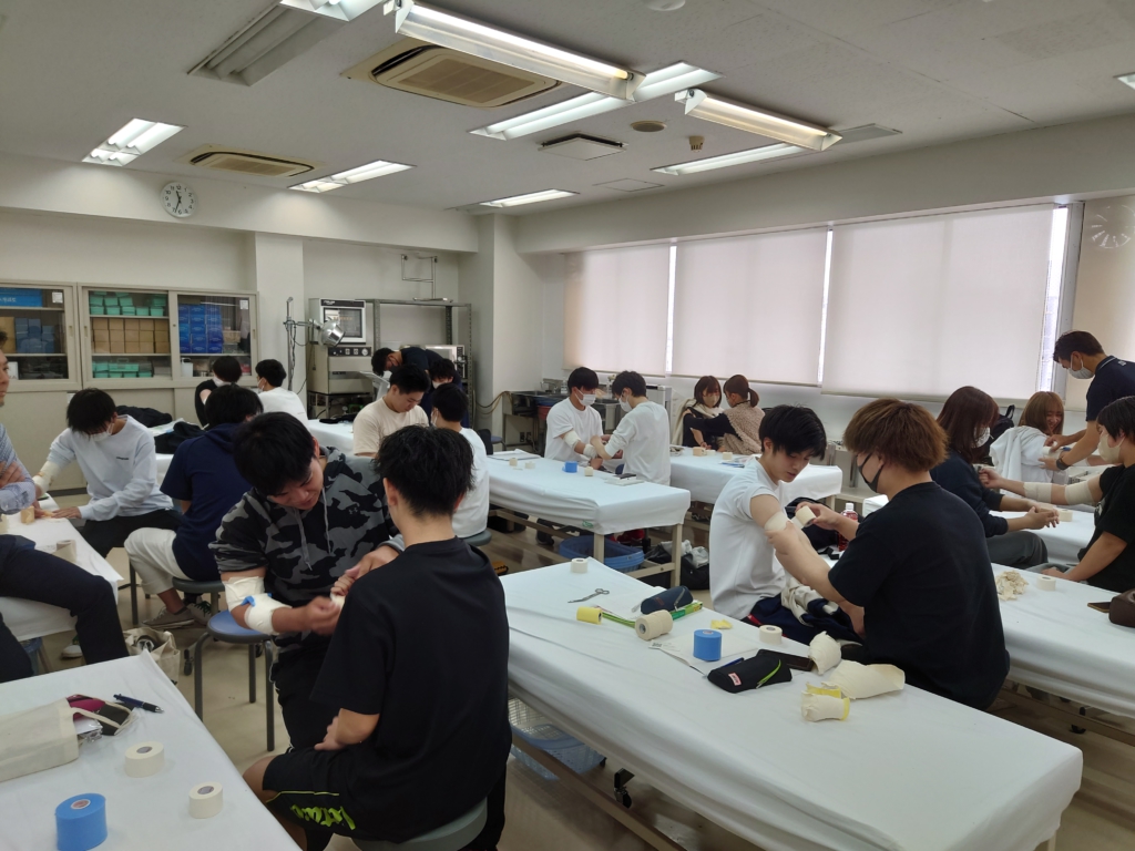 せっかくの機会です、学生たちも積極的にテーピングをしてもらってます!
