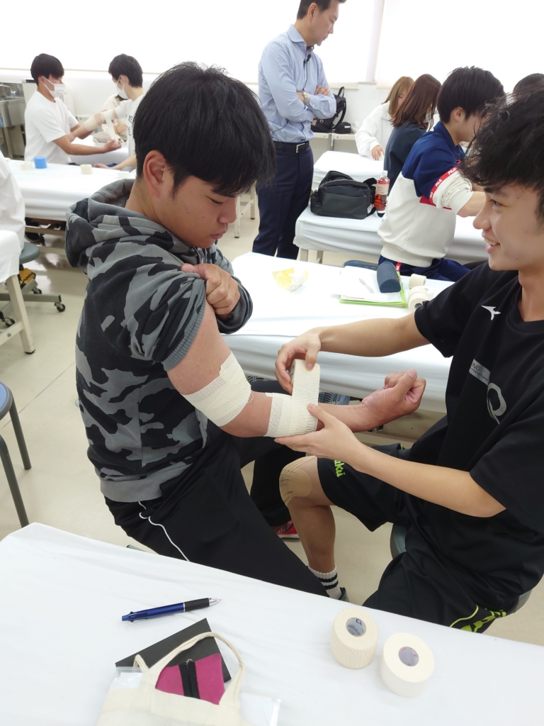 テーピングや包帯は巻くだけでなく、巻かれる事も勉強です。
