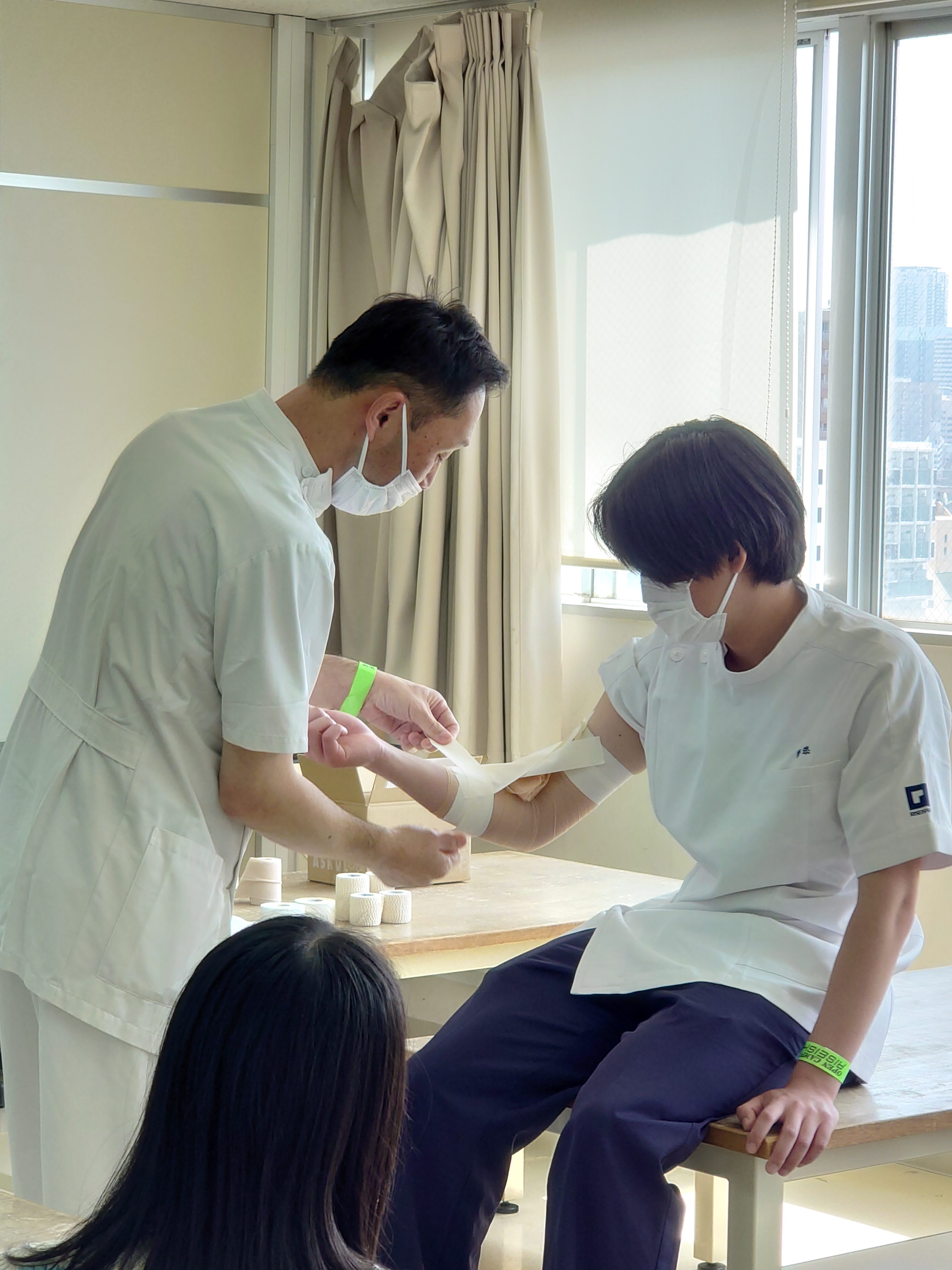 お手伝いで来てもらっていた柔道整復学科の学生も緊張しながら