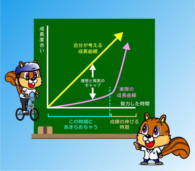 それを知らない学生は直線的に成績が伸びると思っているので、現実とのギャップでやる気を損ねてしまっているのです。