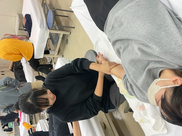 アロマの授業で、上肢のオイルトリートメントのお時間です。