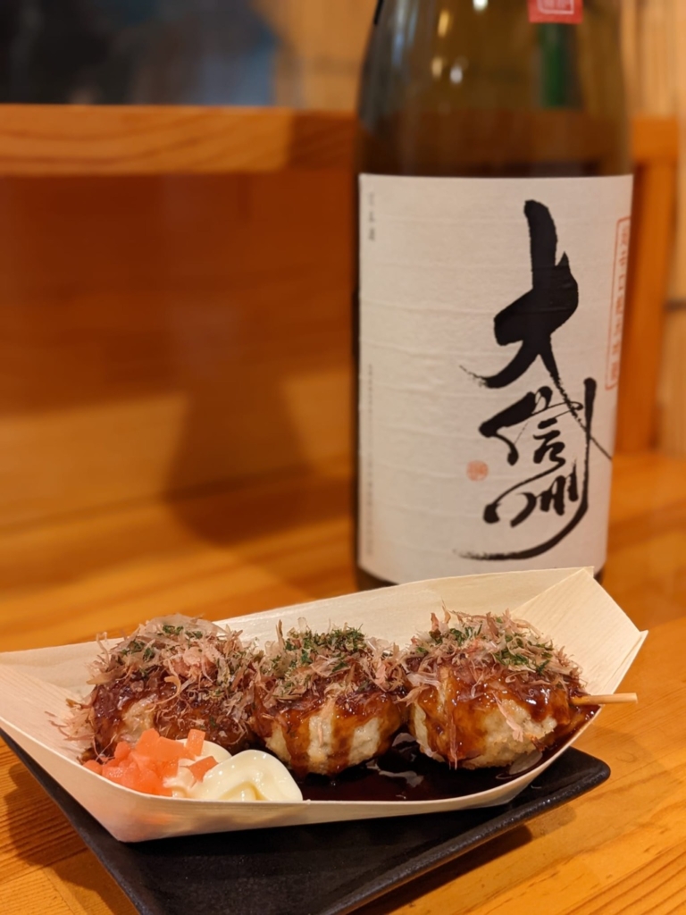 これが想像していたより美味しいんです。焼いたつくねに、ソース、青のり、かつお節、マヨネーズと紅ショウガ。特に紅ショウガは大阪人にはたまりません!