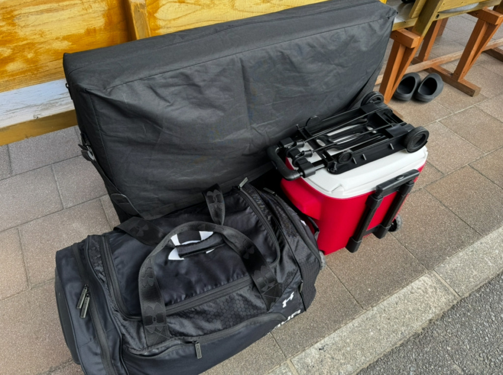 今回は移動方法と距離の関係から用具を厳選しました。(下の写真)