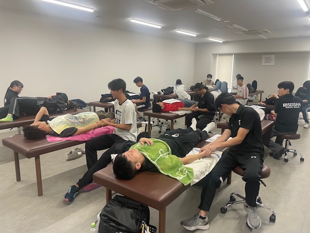 2024.11.23 癒しタイム♪ みなさん、こんにちは。3番目のTです。 一昨日は体育祭だったのですが柔整科は残念ながら優勝を逃してしまいました( ;∀;) いや~スポーツ科はやっぱり強いですわ。現役には勝てません… さて、昨日はそんなお疲れの体を、みんなで癒しあおうということでアロマの授業でハンドトリートメントを行いました。 すこーしだけ照明をおとして、ゆったりと流れるBGMの中半分寝てしまいそうになりながら上肢だけの範囲でしたが、それでも全身がゆったりと力が抜けていく感じを体感できたかと思います。 前の記事 記事一覧 次の記事