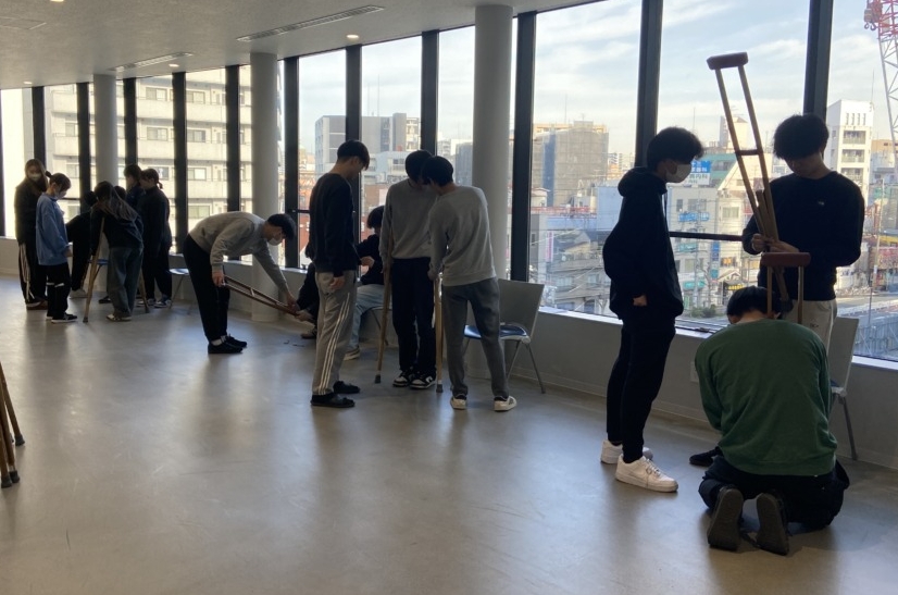 2024.12.13 松葉杖歩行 こんにちは、柔道整復学科のNです。 寒さが増してきて冬本番になってきました。年末は楽しいイベントが色々あるので、体調にはくれぐれも気を付けてください。 本日1年生は、授業で松葉杖を使った歩行をしました。もちろん自分自身がちゃんと使えないといけませんが、最終目的は患者さんにしっかり指導できるようにならないといけないです。グループで杖の持ち方、使い方、歩き方など色々と話し合って指導する練習を行いました。 相手に伝える難しさを実感している感じでした。 前の記事 記事一覧 次の記事