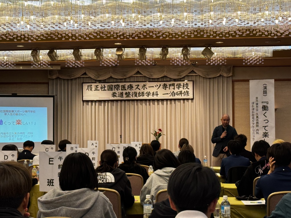 初日は先輩柔道整復師の先生や医師の講演を聴講し、自分たちの目標となる姿や社会での役割を認識しました。