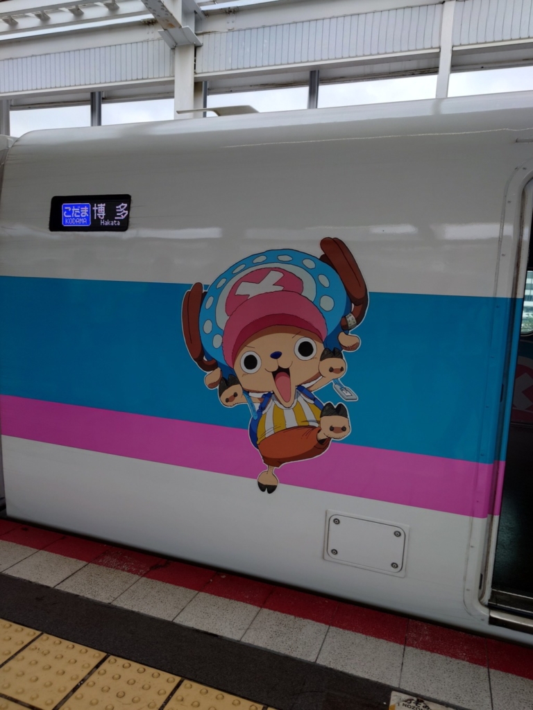 たまたま正面に停まっていた新幹線がワンピース仕様の特別ラッピングだったので