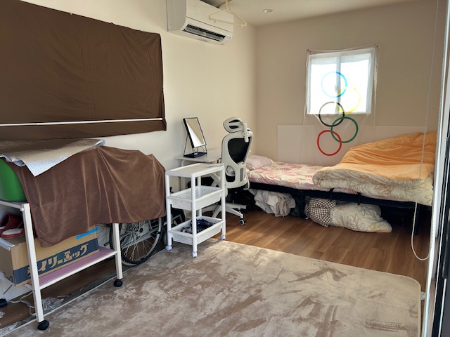 写真にあるように、前回から接骨院の駐車場にコンテナハウスを設置いただき、実習生用の宿舎として利用させていただいている。