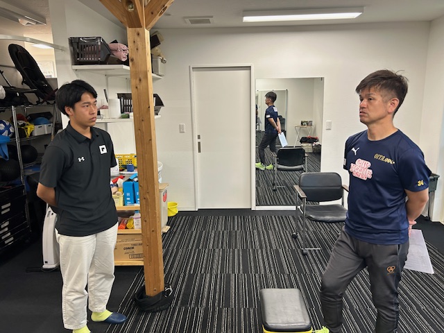 山下君は20年前の卒業生で、サッカーアスリート経験者を活かし、関西で長年臨床経験を積んで、10年ほど前に地元でサッカー系接骨院を開業した。当時のJ1大分トリニータのチームトレーナーとして活躍し、現在もチームと関わっている。