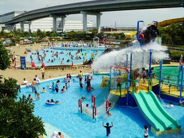 波の起こるプール、ウォータースライダー、アスレチックを含んだプールとてんこ盛り。
