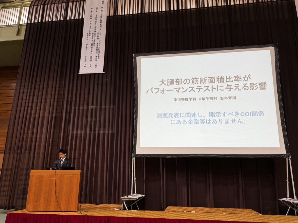そんな中、柔整科からは3年午前部の岩本君が発表してくれました!