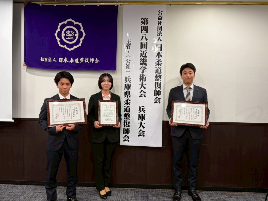 2025.10.27 近畿学術大会 兵庫大会 こんにちは、柔道整復学科のNです。 朝晩は気温が下がってきて、寒さを急に感じるようになりました。体調を崩さないように気を付けましょう! 昨日は、3学年ともに公益社団法人日本柔道整復師会 第48回近畿学術大会兵庫大会に参加してきました。今年は3年生の京井さんが柔道整復師の先生方を前に堂々たる発表をしてくれました。また、開会式と閉会式では3年生の加藤くんと岩本くんが司会に選ばれて、見事な進行をしてくれました。最後は表彰されて、すごく貴重な経験が出来たと思います。 1 0 8 . 0 前の記事 記事一覧 次の記事