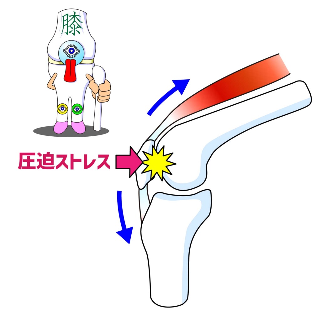 太ももの前の筋肉(大腿四頭筋)が硬くなると、お皿は大腿骨に押しつけられて動きが悪くなり、