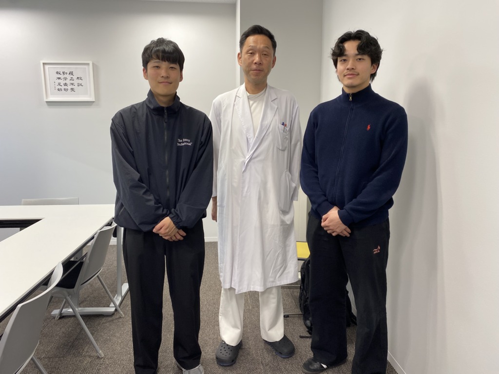 2026.04.27 卒業生来校 ~part 2~ こんにちは、柔道整復学科のNです。 もうすぐゴールデンウィークですね!朝晩と日中との気温差があるので、体調を崩さないようにしてくださいね。 先日、またまた卒業生が来てくれました。5年前の卒業生の大城くんと和田くんです。2人は卒業後にそれぞれ接骨院で経験を積んできて、この度開業する報告に来てくれました。5月15日に寝屋川市で開業します。(香里園たいじゅ整骨院)これから大変な事もあると思いますが、2人で力を合わせて頑張ってほしいと思います。 前の記事 記事一覧 次の記事