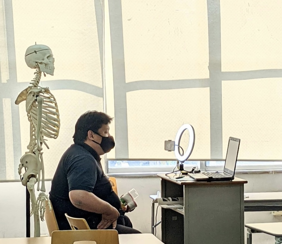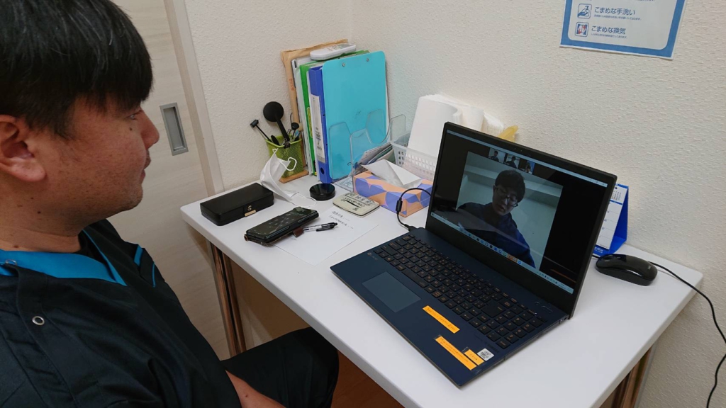 鳥取市にある臨床実習施設から、リモート・フィールドスタディーの様子。