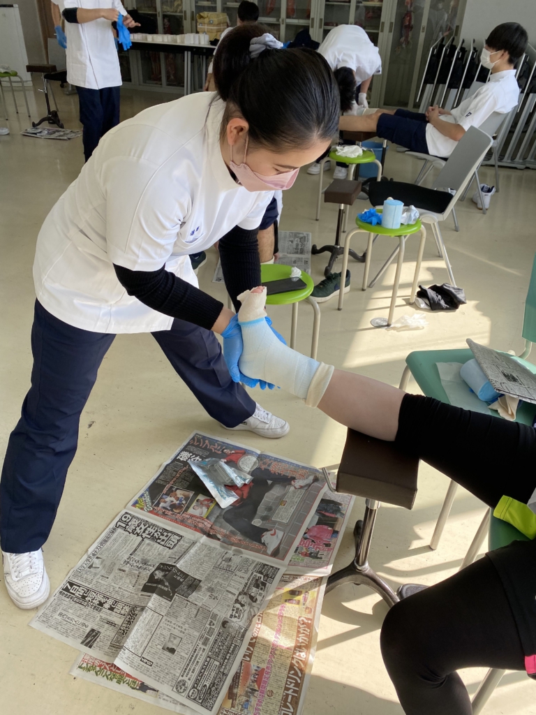 接骨医療専門実技教科担当、中谷功先生の2年後期単位認定試験のようす