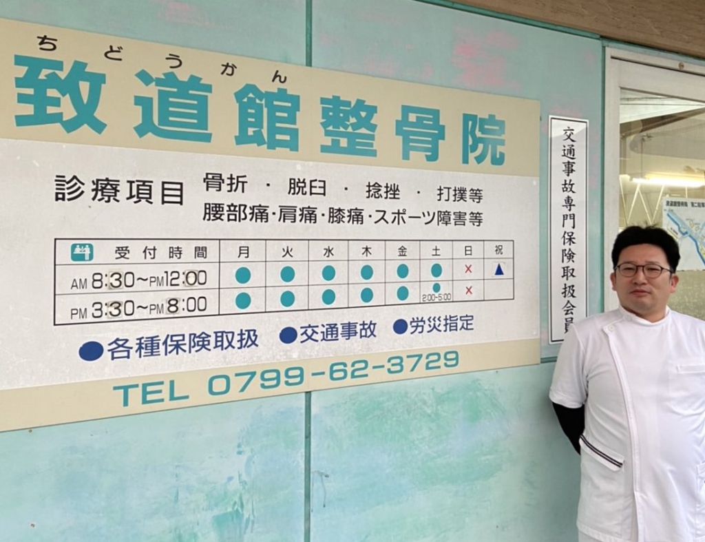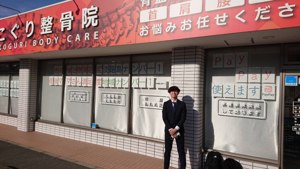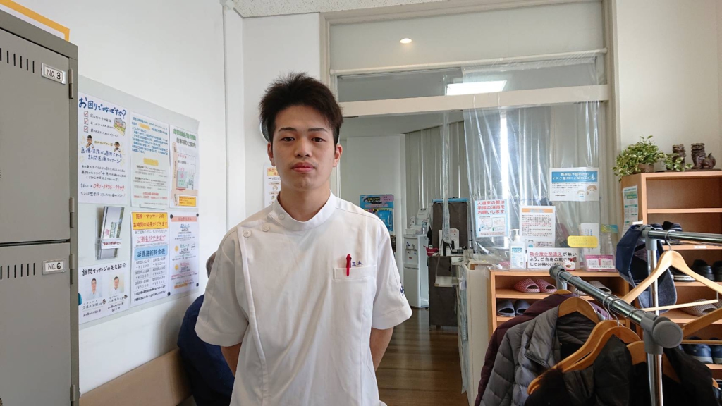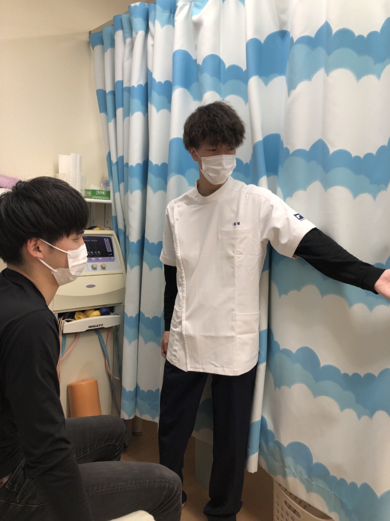 卒業生が開業する赤穂鍼灸整骨院で、2年第4期臨床実習を受けている、玉木の未来