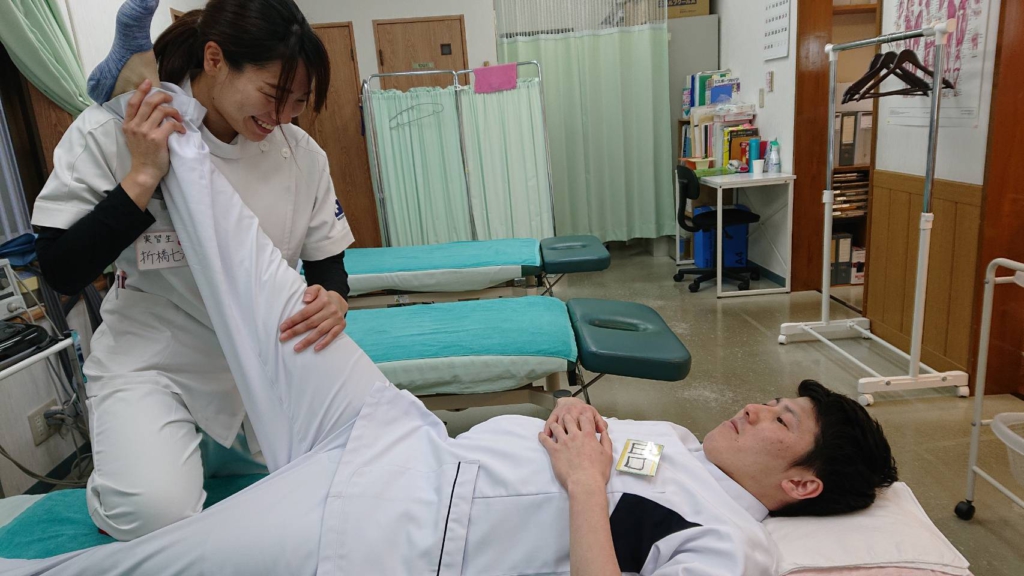 柔道整復師になるための、医療専門職教育。将来の仕事に直結する実習実技そして研修が必要だ。