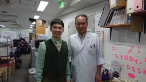 またまた卒業生が来校。従業員185名、18院を持つ法人接骨院でリクルート活動 をする、6年前の卒業生、中原君とのショット。