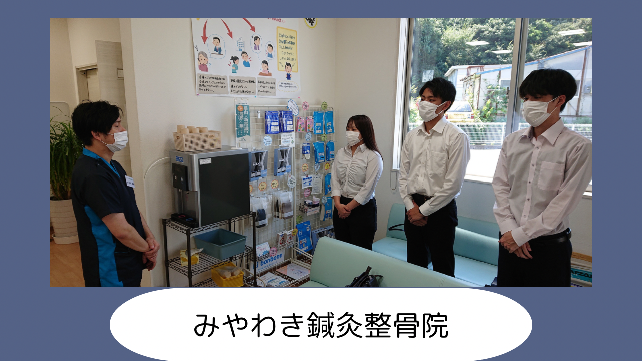 2年第3期応用体験実習、実習前現地指導会、鳥取市にある、みやわき鍼灸整骨院 でのようす。