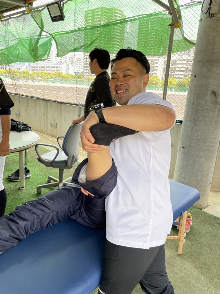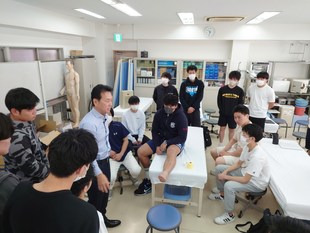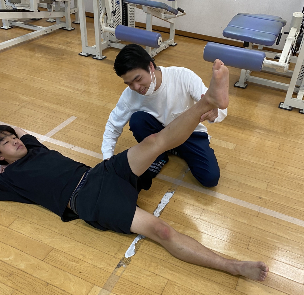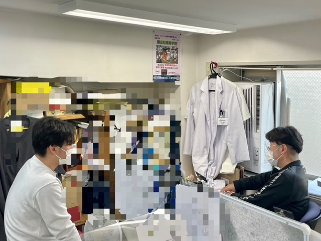 履正社柔整臨床実習施設で今後3年間、管理柔道整復師を目指し臨床実務研修を 始めた、新卒関谷君の姿