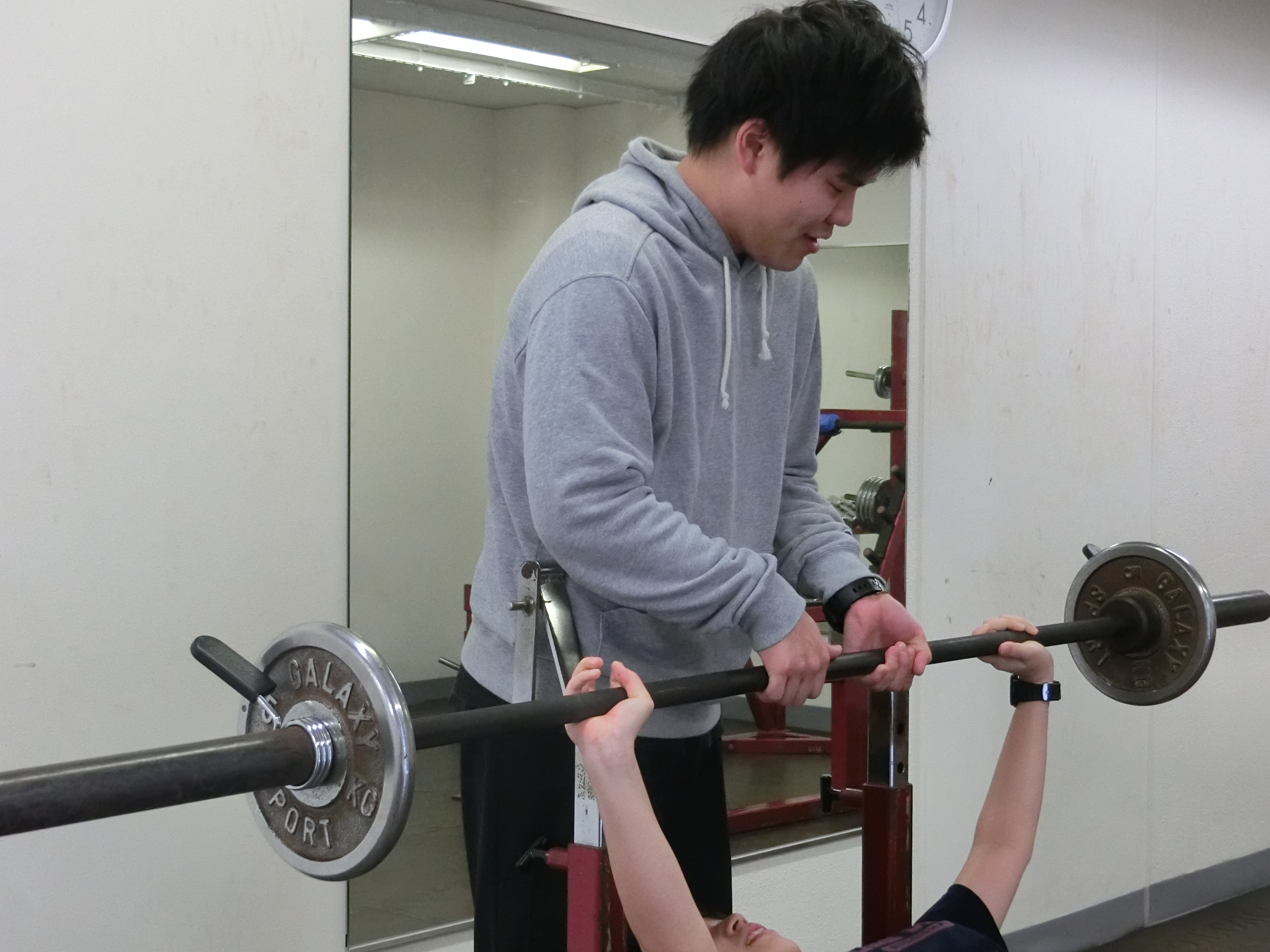 この日学校に寄ったついでに、学生専用第2トレーニングルームで友人のトレーニングのお手伝い![]()