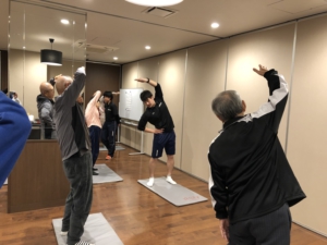 運動指導の内容はウォーミングアップから始まり、椅子に座って行うエアロビクスや口腔体操、レクリエーション、ピラティス、ボディケアストレッチなど、内容は盛りだくさん!