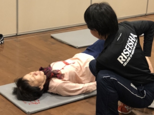 高齢者への集団指導(グループレッスン)は大勢の人の前でただレッスンを行うだけでなく、一人ひとりに目を配りながら正しく動作が行われているか、わかりやすい指示を出せているかが重要なんです。高齢者の中には様々な疾患を抱え、難しい運動動作が行えなかったり、指示が伝わりにくいことがあるんです!!