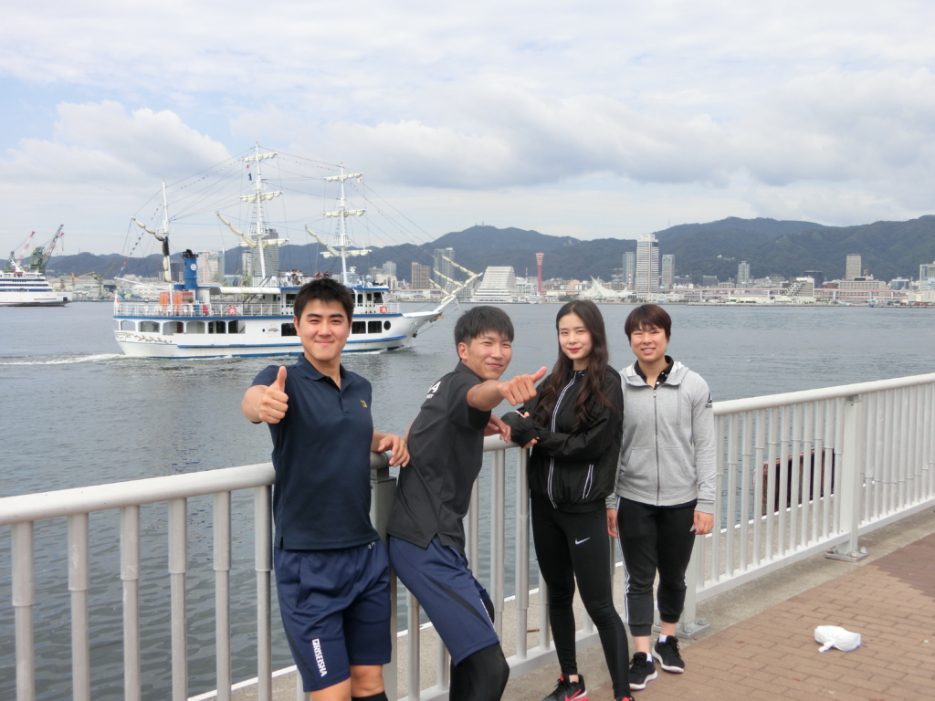 休憩時間に、今回担当してくれた4名で、神戸の街と六甲山をバックに記念の1枚。