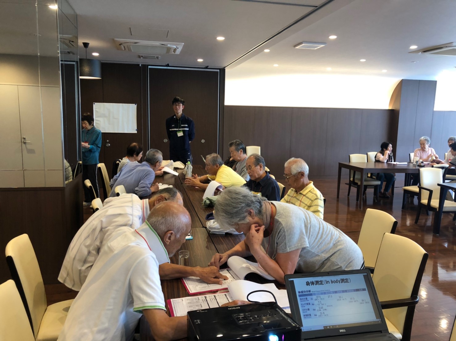 20名以上のマンション在住の方々に参加いただき、みなさん本校の学生と会話を楽しみながら自身の健康状態や体力年齢を知ることができ大満足のご様子でした。